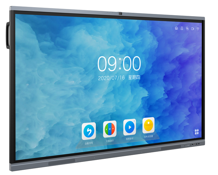 4.整機支持超級任務欄,功能包括:結束會議,打開應用,任務視圖,主頁,設置,網絡狀態,時間/日歷,觸控精靈菜單入口。通過底部觸控上劃調出超級任務欄,并且在未操作時可自動隱藏;前臺應用全屏運行,支持通過超級任務欄打開另一應用進行分屏展示。