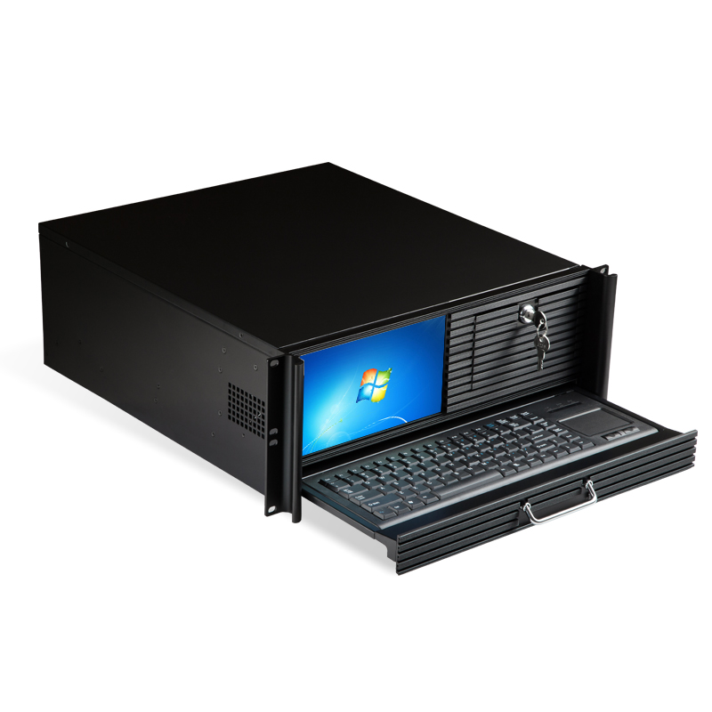 1.機架式4U機箱,機箱自帶9寸液晶顯示屏,適時監控CPU運行溫度,風扇運轉情況